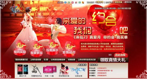 《诛仙2》真爱月创意约会征集活动正在火爆进行!怎样约会才叫创意?什么浪漫场景是情侣不可不去?《诛仙2》7大浪漫约会场景,哪个是你的最爱? http://event21.wanmei.com/zhuxian/201102/truelove/index.jsp 创意约会征集,参加活动就有机会收获好礼 【最幸福的约会——凤凰楼】 雕梁画栋的凤凰楼,站在露台之上,抬眼望去,漫天的繁星,幽静的星空,旁边是甜蜜的伴侣,享受那一份浪漫。婚礼殿堂“凤凰楼”是情侣们的最爱。 凤凰楼