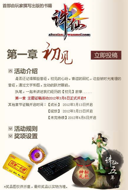 首部由玩家撰写出版的书籍“我的书”征集活动,正在火爆进行中!3D玄幻网游巨制《诛仙2》与你相知相伴,只要你对时光有所感悟,就可以用故事、情感短文、游戏截图、老照片等多种形式来参与活动。“我的书”征集将按照“初见”、“成长”、“绽放”“未完待续”四章顺