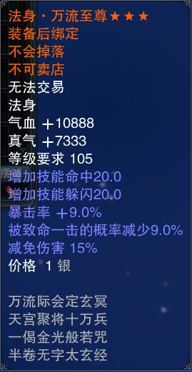 500积分可升级金身法身“万流至尊” 在河阳 充值奖品兑换员处,你可以对相应罡气、护符进行升级:使用“辰龙之祝”,可将“兔年吉祥”极品罡气转化为“龙年吉祥”极品罡气;使用“甲子龙灵”可将“辛卯护符”转化为“壬辰护符”。“辰龙之祝”、“甲子龙灵”参与充值回馈活动均可获得。